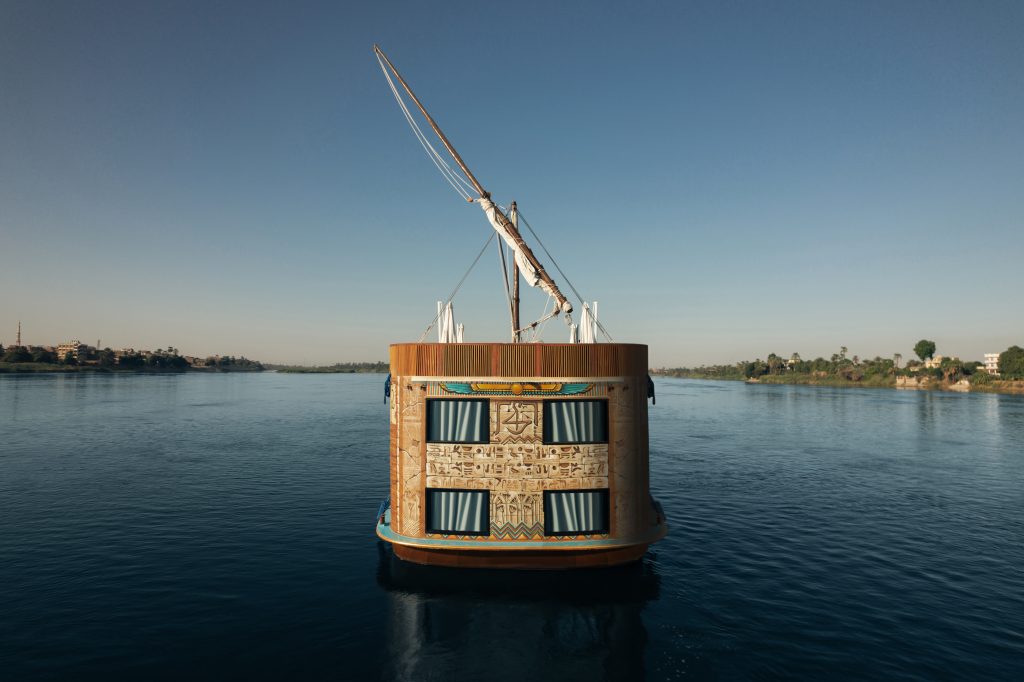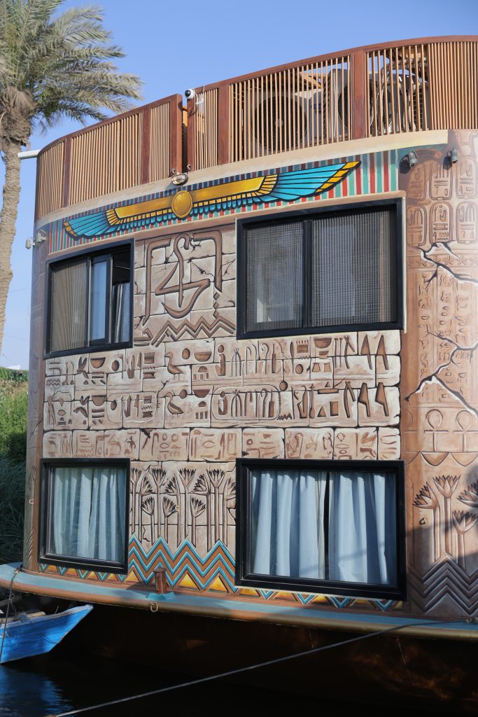 The design and construction of our elite 8 – 12 cabins/suites boats epitomize elegance and meticulous craftsmanship. Every inch is thoughtfully curated to blend comfort with sophistication, offering a private and luxurious setting for our discerning guests. The exterior, hand-painted by the brush of a skilled and gifted artist, showcases a sleek and timeless design, seamlessly merging with the serene Nile surroundings. The painted exterior of our boats marks them as unique “floating paintings”, connecting the present journey along the Nile with the rich heritage and artistic legacy of the past.