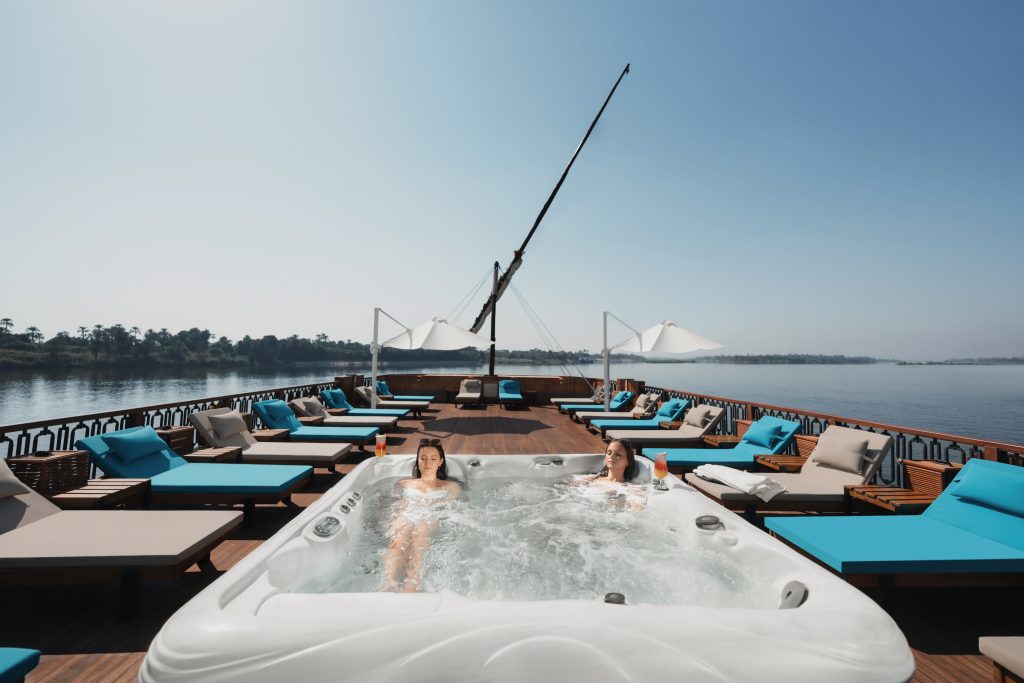 Indulge in the epitome of luxury as you sail the majestic Nile, enveloped in the opulence of a jacuzzi experience aboard our boat. Picture yourself immersed in warm, bubbling waters, the rhythmic sounds of the Nile’s currents providing a soothing backdrop. The panoramic views of ancient wonders and lush landscapes unfold around you, creating a sensory feast. This unique blend of relaxation and adventure allows you to bask in the beauty of the Nile’s timeless allure while enjoying the lavish comfort of a private jacuzzi, creating unforgettable memories.